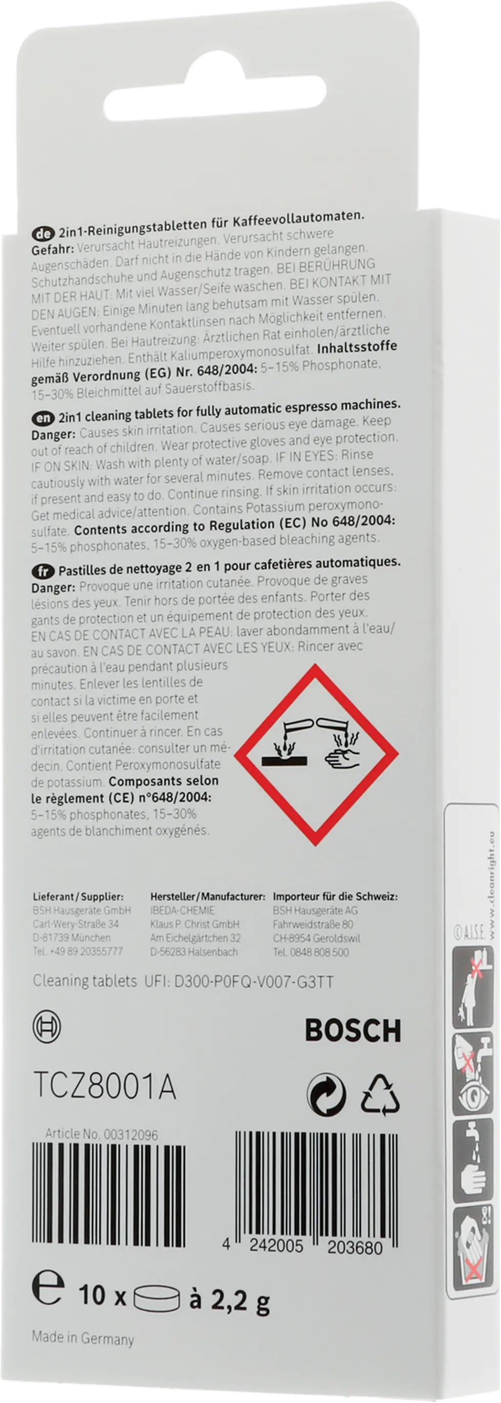 Pastillas de detergente Pastillas de limpieza para cafeteras Bosch (10x2,2g)00312096 • TCZ8001A