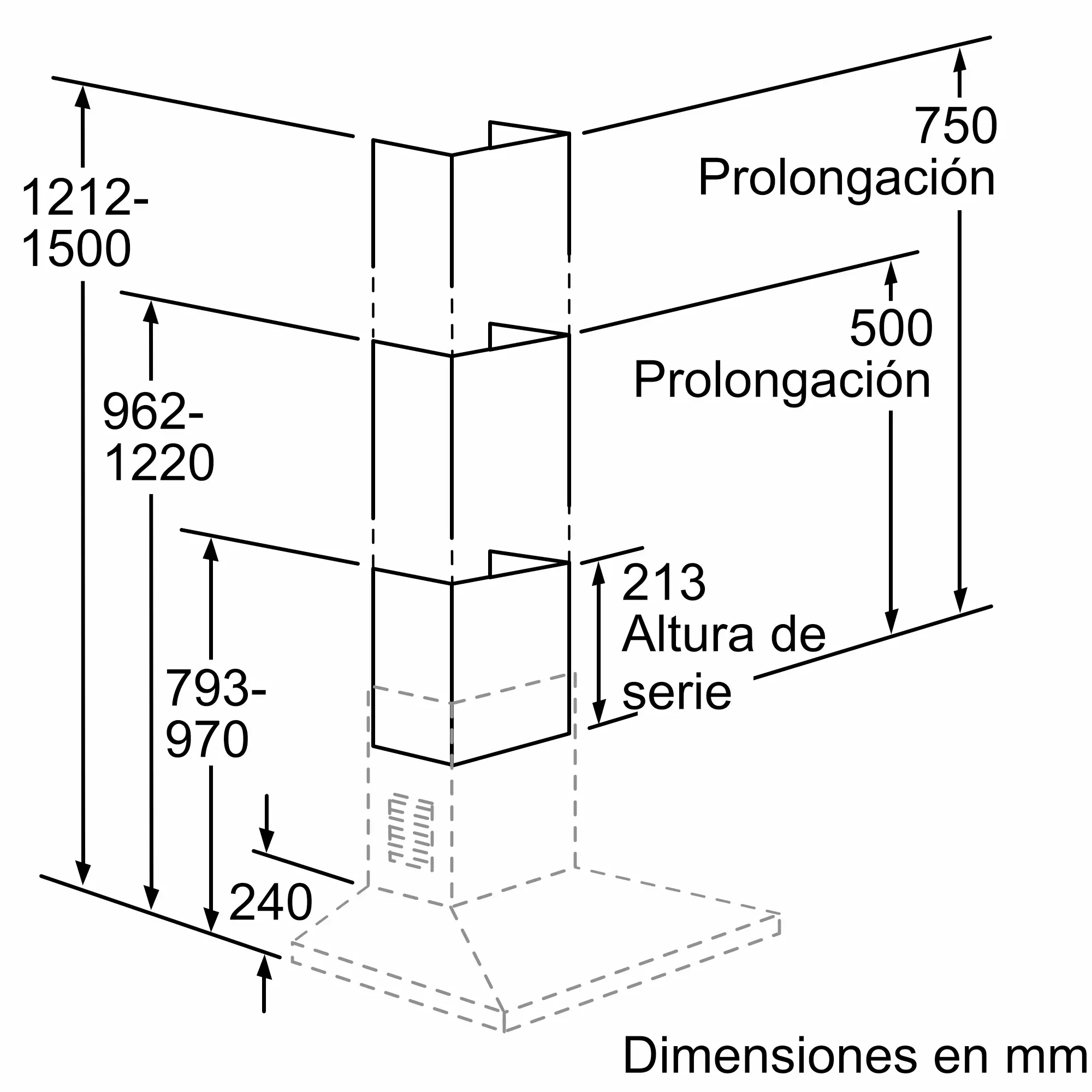 Conducto prolongador de 0,5m. para campanas decorativas de pared