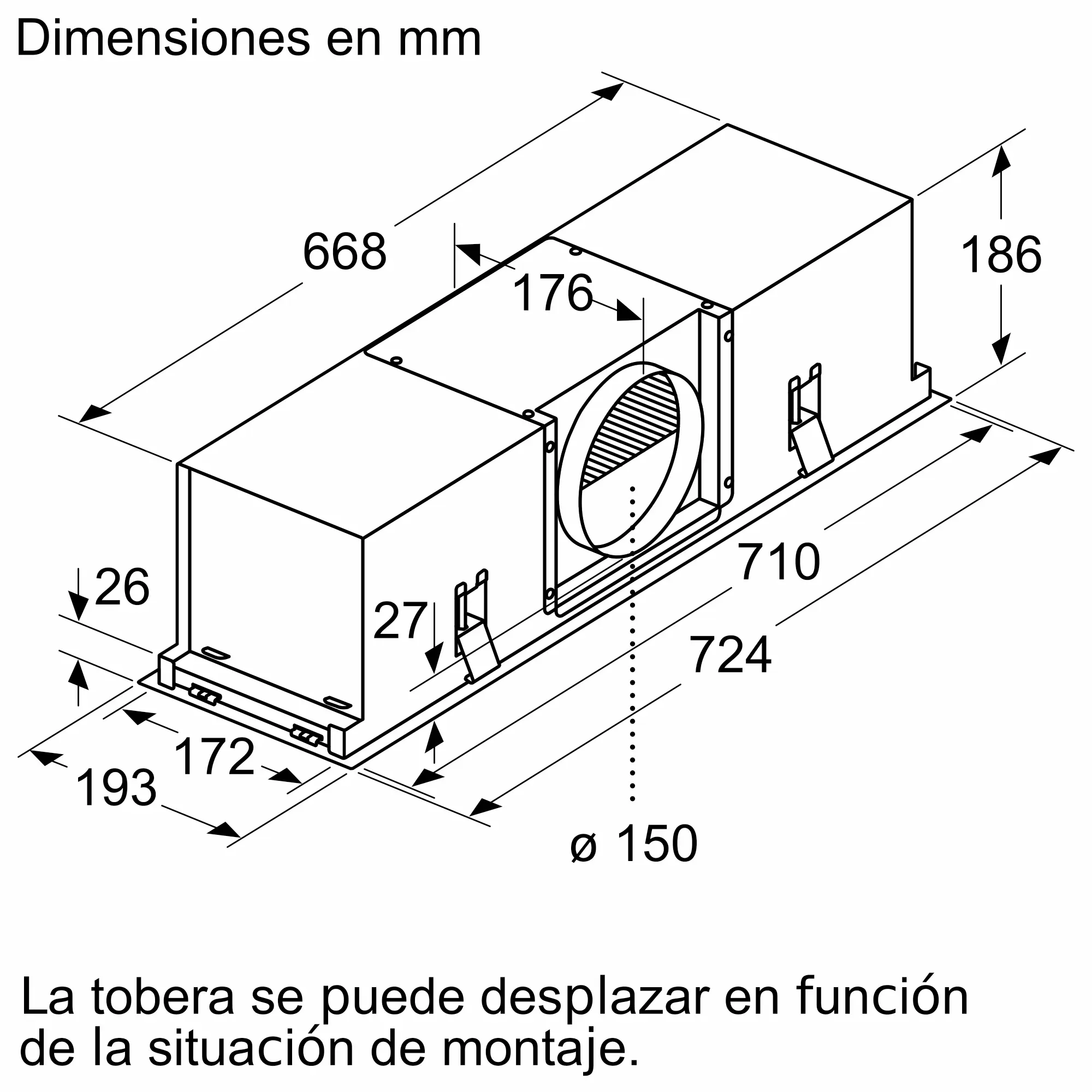 Conexión a conducto en la parte frontal, lateral o superior