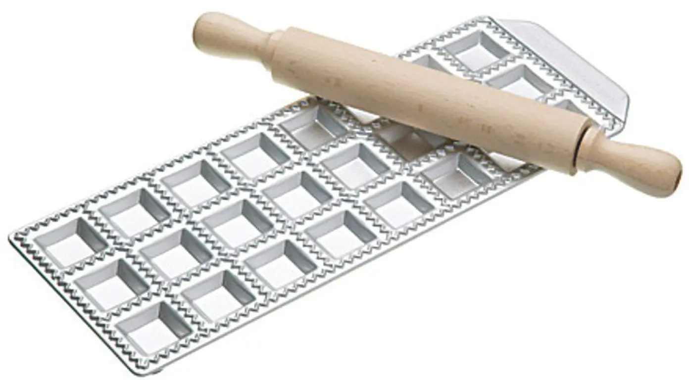 Incluye:- Molde para 24 raviolis y rodillo, de aluminio estampado.